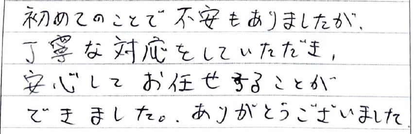 初めてのことで 不安もありましたが、丁寧な対応をしていただき、安心してお任せすることができました。