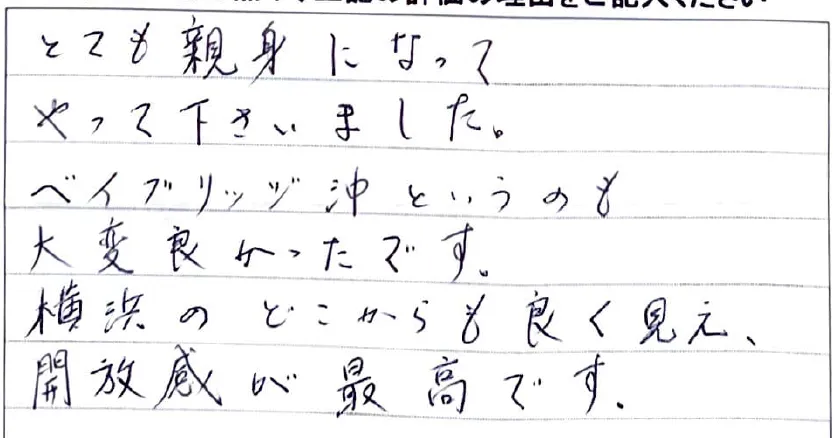 この度は大変お世話になりました。終始丁寧なご対応に感謝申しあげます。
